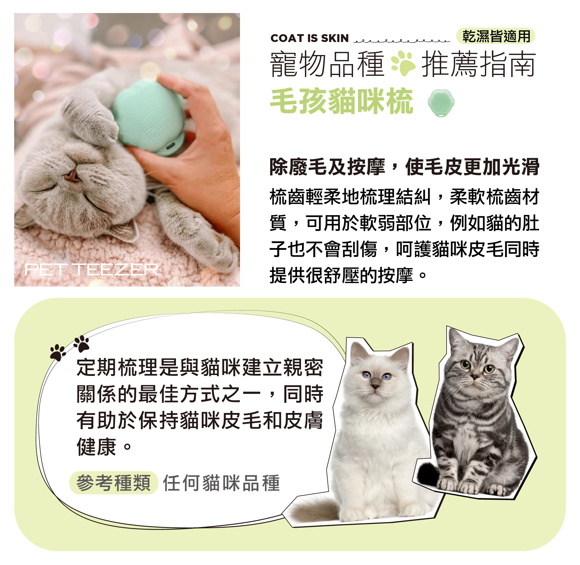⁕ 柔軟梳齒材質,使用於軟弱部位,例如貓的肚子也不會刮傷