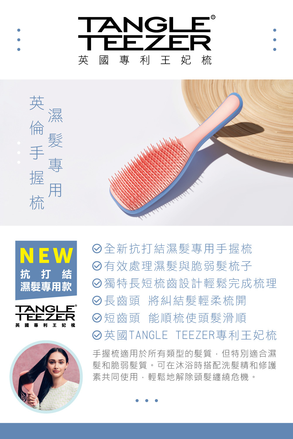 英倫手握梳系列:擁有獨家特殊鋸齒,在濕髮時利用手握梳帶過修護素,有效擊退洗髮中纏繞糾結的頭髮,迅速解開並同時防止頭髮斷裂。