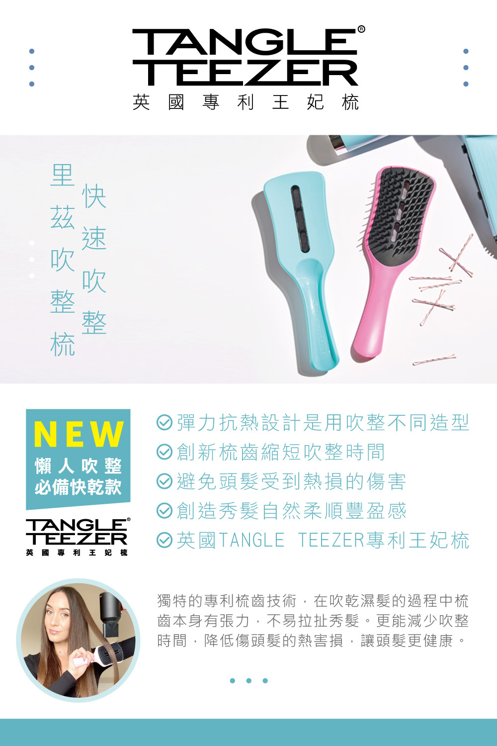 里茲吹整梳系列:獨特的專利梳齒技術與輕量化設計,梳齒本身提供的張力在吹乾濕髮的過程中透過,不拉扯秀髮。更能減少吹整時間,使頭髮受到熱損的傷害降低,讓頭髮更健康。