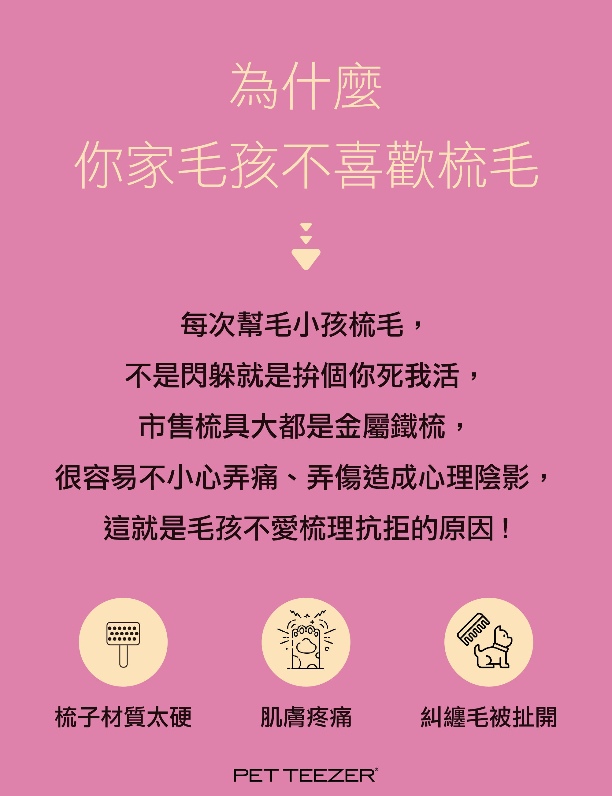 ⁕ 獨家專利的雙層梳齒在毛皮中滑動,提供最溫和的觸感