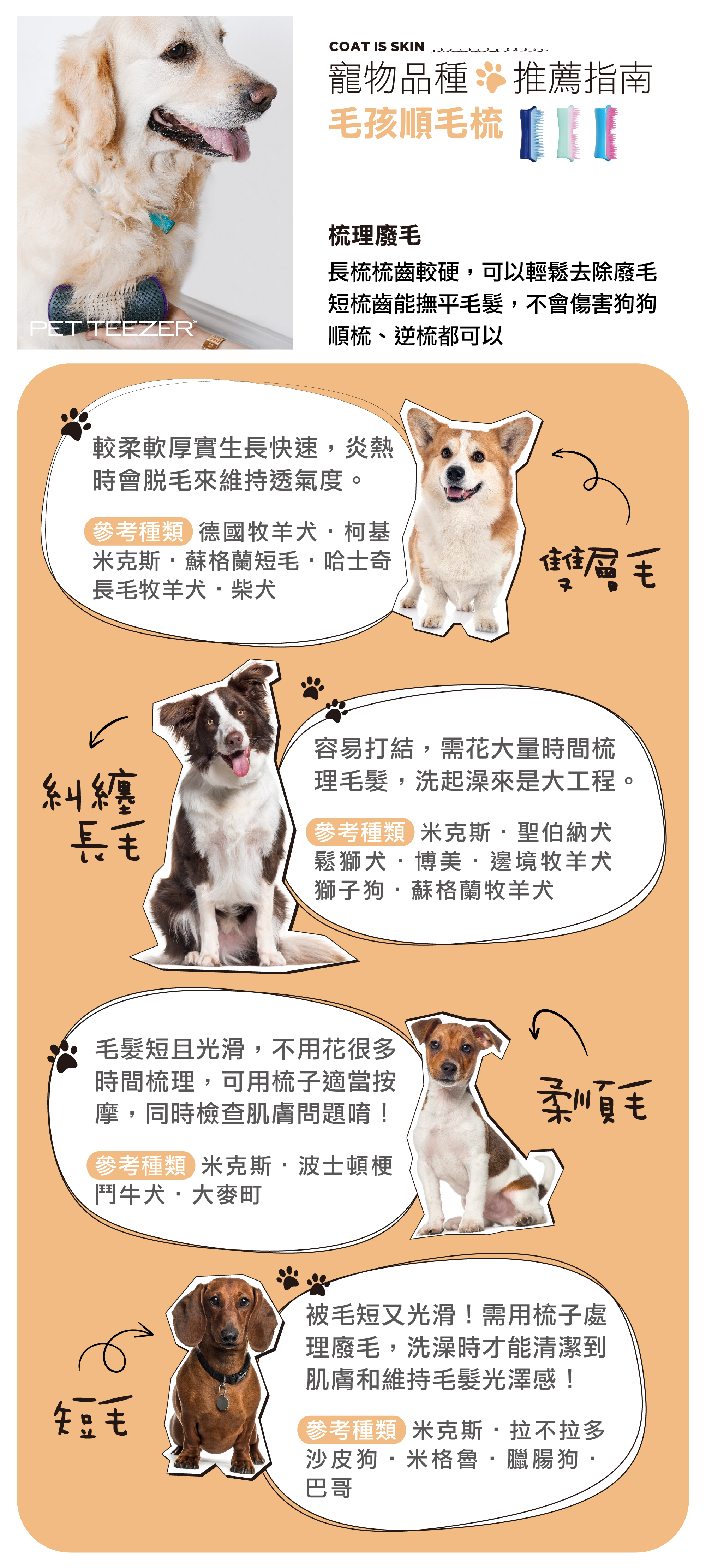 ⁕ 長梳梳齒較硬,可以輕鬆去除廢毛