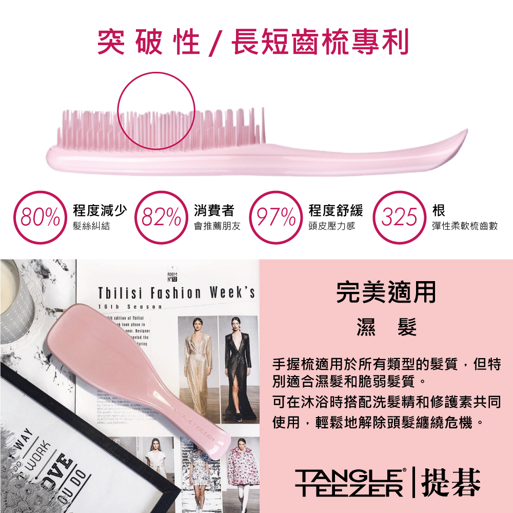 英倫時尚梳系列:獲得多項美妝產品設計大獎的專業級順髮梳,小巧易握讓您感受在掌心的魔力!長短不同的雙齒梳可輕鬆解開糾結,不易傷害髮質造成毛燥分岔。不論是乾髮或濕髮都能輕鬆梳理不掉髮。