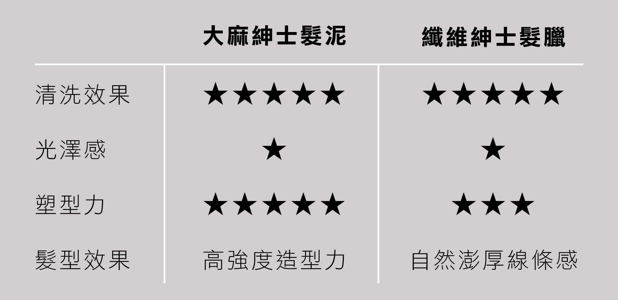 *大麻紳士髮泥內含火山土萃取物擁有極強的塑型力,啞光質地能讓頭髮看起來更厚實